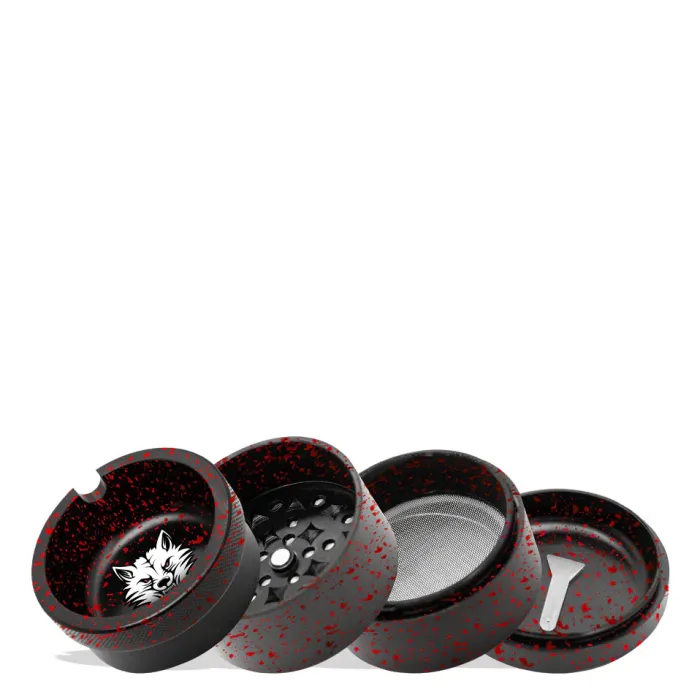 The body of the 65mm Bevel Grinder has been treated with an anodized finish, has proprietary thread design, and was constructed from aerospace-grade aluminum to make sure this grinder is with customers for as long as they need it. The Bevel Grinder itself is divided into four pieces, including a dedicated kief catcher with included tool. All together this makes each Bevel Grinder 6pk have an immense amount of value for your shop, so look over the 8 available color options including Wulf spatter favorites like the white-red and purple-black.