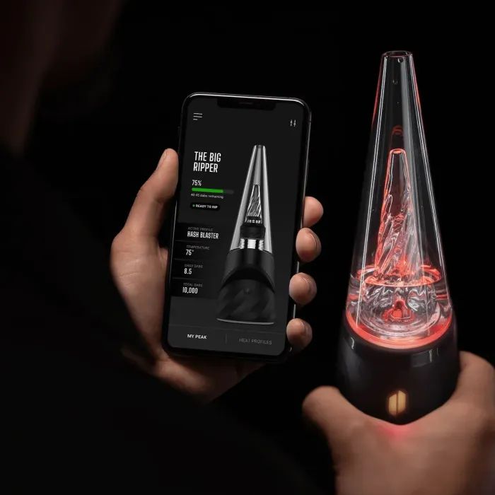 The new Peak Pro 3DXL is the pinnacle of hash technology. This premium smart rig delivers incredible flavor and unparalleled performance.Unlock the fullest potential of the plant with its patented 3DXL Chamber, single-button interface, and deep customization via the Connect app. Featuring the Joystick Cap and laser cut perc slots for improved water filtration, enjoy the best hash experience ever in two beautiful colorways – Onyx and Pearl.