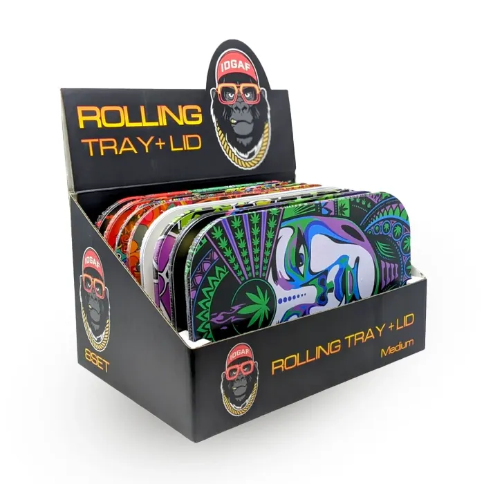 IDGAF ROLLING METAL TRAY W/LID DISPLAY 8CT - MEDIUM B MTL400