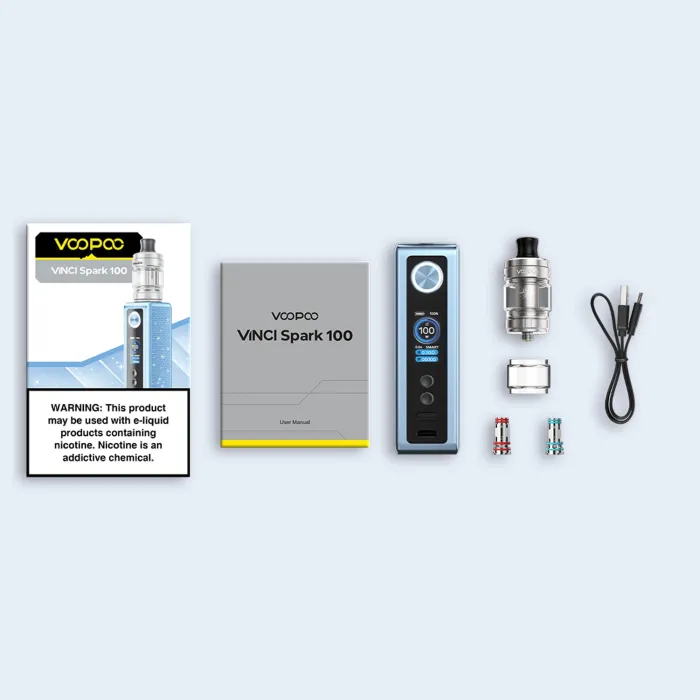 Features a crafted metallic box design and starlight panel display, VOOPOO VINCI Spark100 captures the brilliance of a starry sky in users hands. New UFORCE-X Nano Tank ensures a superior leak-proof performance and an outstanding DTL to RDL experience with its top ariflow system. Its compact size elegantly clicks with a box shape mod. The PnP X atomizing technology delivers a prolonged flavor restoration with up to 100ml without leaking or burning. Create a unique atmosphere with different starlight animations and UI themes.